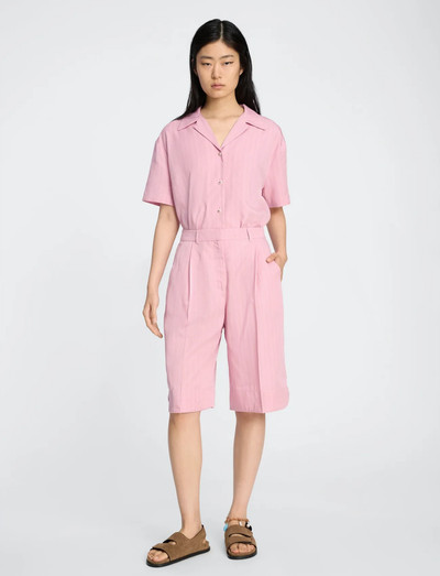 This shirt has a relaxed, straight silhouette with short sleeves and subtle stripes. It is finished with a button closure, a single chest pocket, and a soft collar shape. A clean, balanced design that works on its own or paired with our matching UAMA shorts.