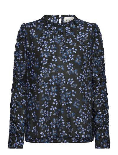 Blouse with a beautiful all over flower print, designed with an elegant ruffle detail at the neck. The blouse has long sleeves, with a drawstring detail on the side of the sleeves.