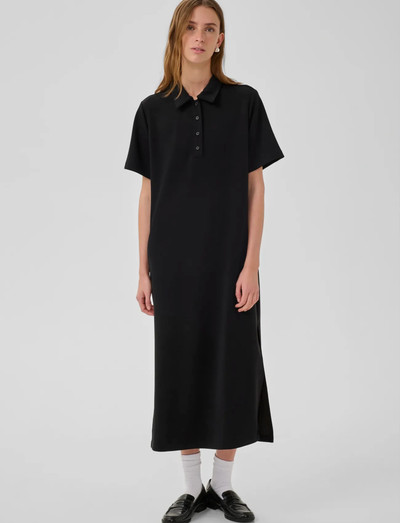 Offering a relaxed silhouette, this long polo dress features a buttoned placket and short sleeves. The design incorporates subtle side slits for ease of movement.