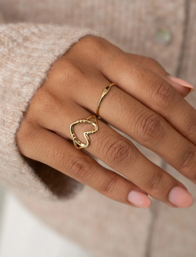 An open heart design defines this ring, offering a unique and stylish touch. The band features subtle detailing, enhancing its overall appeal. A perfect addition to any jewellery collection, it's ideal for everyday wear or special occasions.