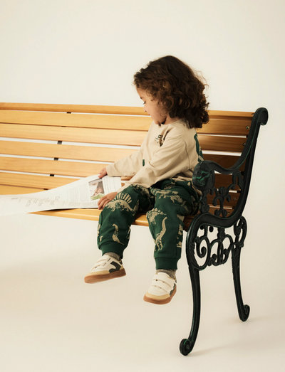 Dress your child in comfort and coolness with trendy trousers that ensure a soft feel. Brushed sweat fabric has a soft inside for a comfortable feel. - Product Type : Trousers - Extra details : Adjustable waist - Print : Print repeated across the entire surface of the product - Fit : Regular fit trousers have a fitted upper part and regular fit legs - Attachment type : Fixed cord - Attachment length : 13
