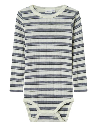 Add soft and cosy wool styles to your child´s wardrobe and ensure comfort all year round. Needle drop is characterised by dropped stitches for unique patterns and a cute look. - Product Type : Bodysuit - Neck : O-Neck - Sleeve : Long Sleeves (L/S) - Closing : Press stud fastening in crotch