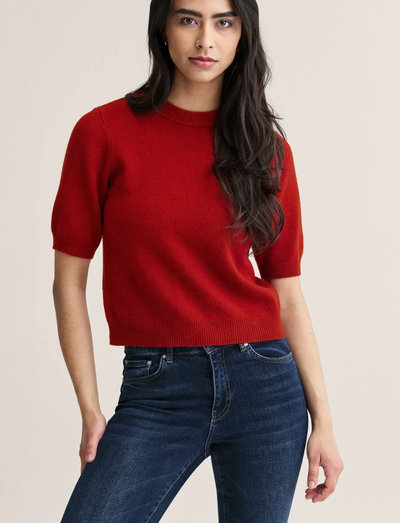 Knitted top with short sleeve, knitted in a blend of RWS certified wool, cotton and recycled nylon.