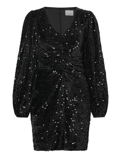 Teagan SH Dress is one of our popular sequin dresses. It features a deep v-neckline, long sleeves, and gathered details at the front that provide a flattering fit.