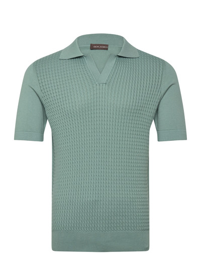 Elevate your casual wardrobe with this knitted polo shirt, featuring a textured front panel that adds a touch of sophistication. The short sleeves and classic collar make it a versatile piece for warmer days.