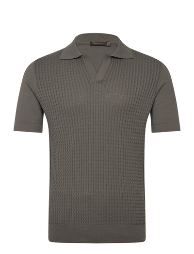 Elevate your casual wardrobe with this knitted polo shirt, featuring a textured front panel that adds a touch of sophistication. The short sleeves and classic collar make it a versatile piece for warmer days.