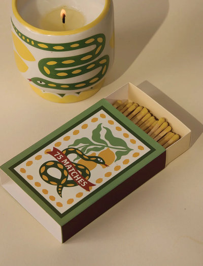 A Dopo! Translates to See ya Later! This friendly, on-the-go attitude inspired this whimsical collection that alludes to summertime travels across the Mediterranean and beyond. Illustrated in the same style, these matchboxes have been filled with 75 safety matches with coloured tips to accessorise your favourite A Dopo candle!