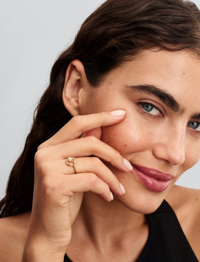 Make a bold statement with the Organically Shaped Pavé Circle & Treated Freshwater Cultured Pearl Ring. Featuring 14k gold plating and a treated white freshwater cultured pearl, this piece showcases a unique blend of simplicity and elegance.