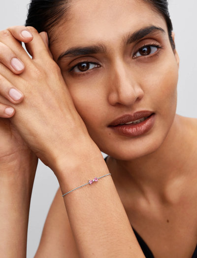 Bow sterling silver bracelet with fancy pink and clear cubic zirconia - Chain bracelets