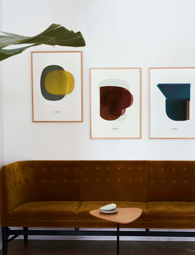 As an architect and product designer sketching is an integral part of the work process. this is how all projects begin. for me, sketching is a tool to achieve feedback on ideas. a tool to try out shapes and forms. it is intuitive, it is thinking on a piece of paper. my sketches are seldom refined, but often repeated and continuous in search of a specific expression or character, which i later replicate in cad or with physical models. for this illustration series for paper collective i have swiped through recent sketchbooks and selected a few of my favourite shapes and forms. with use of colours and textures they have transformed into abstract, graphic volumes. in parallel, the illustrations become an abstract — a summary — of my collected notes and inspiration from a certain sketchbook period. therefore, the series is called — sketchbook abstracts.the frame is not included.