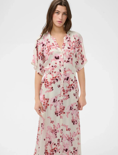 Featuring a button-up front and a flowing silhouette, this midi shirt dress offers effortless style. The design incorporates short sleeves and a flattering V-neck, making it a versatile choice for various occasions.