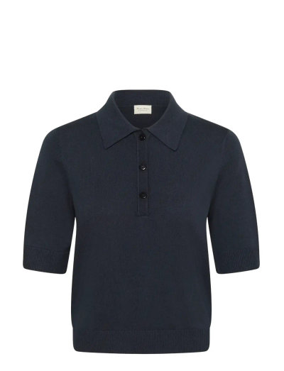 Featuring a neat collar and short sleeves, this striped knit top offers a refined yet casual look. The subtle stripes enhance its visual appeal, making it a versatile addition to any wardrobe. Perfect for layering or wearing on its own.