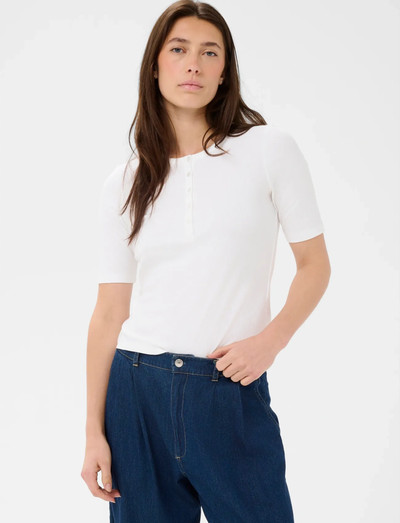 Featuring a button-up front, this short-sleeved top offers a blend of classic style and casual comfort. The design incorporates a crew neck, making it a versatile addition to any wardrobe.
