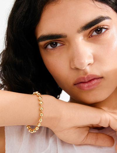 Air with attitude! The AIR bracelet from Pilgrim brings serious edge to your styling. With its bold gold-plated orb design and sculptural spheres, it delivers standout vibes that work with minimalist looks or stacked, expressive layers. Wear it solo for a sleek statement or mix it up with chunky cuffs and chains. Made from 98% recycled materials — because style should never cost the planet.