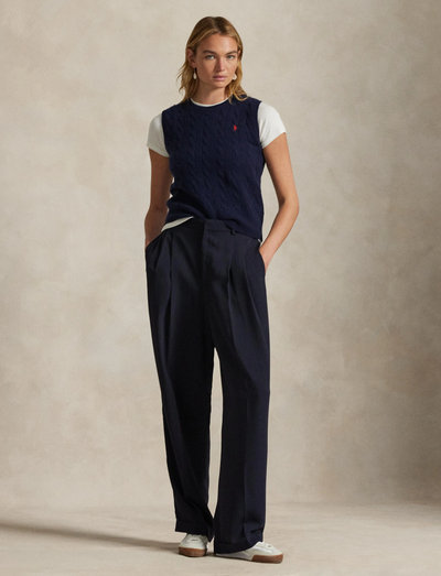 Crafted from a soft wool blend, this sleeveless knit offers warmth and a classic look. The cable-knit design adds texture and visual interest, making it a versatile layering piece.