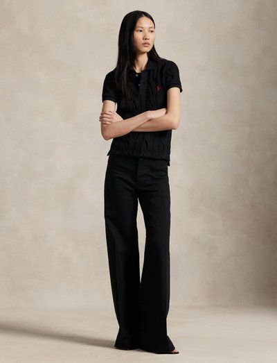A large-scale version of our classic cable-knit motif defines this Polo shirt, which is crafted with cotton for a slim fit and accented by our signature embroidered Pony at the chest.Slim fit. Intended to hit at the hip.Size medium has a 22.5" front body length. Body length is taken from the high point of the shoulder.Ribbed Polo collar. Two-button placket. Short sleeves with ribbed cuffs.