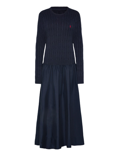A classic cable-knit design defines the bodice of this dress, offering a textured contrast to the smooth, flowing skirt. The long-sleeved construction makes it suitable for cooler weather, while the maxi length adds an element of sophistication.
