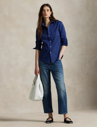 Classic in fit and style, this cotton twill shirt is detailed with shell buttons and our signature embroidered Pony at the left chest.Classic Fit: a straight silhouette. Intended to hit at the hip.Size medium has a 29" back body length and a 33" sleeve length. Body length and sleeve length are taken from the center back of the neck. Sleeve length changes 0.75" between sizes.Point collar. Buttoned placket. Shell buttons.