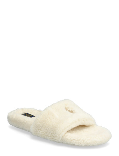 Rendered with a faux-shearling texture, these cozy slippers are designed with a casual open-toe silhouette and feature our signature embroidered Pony at the vamp.Open toe.Slip-on styling.Padded insole.