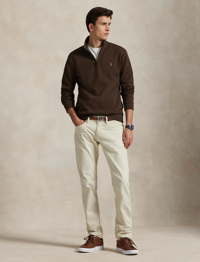This cotton-blend pullover is made from a mesh-textured version of our double-knit fabric and finished with our signature Pony.Size medium has a 27.5" body length (front and back), an 18" shoulder, a 43" chest, and a 34.75" sleeve length. Sleeve length is taken from the center back of the neck.Mockneck. Quarter-zip placket. Zipper custom-developed with a “Polo” logo and detailed with a faux-suede pull.Long sleeves with banded cuffs.