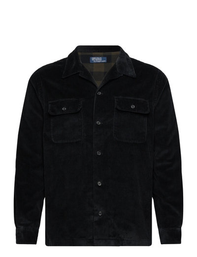 This camp-collar overshirt gets a rustic update with wide-wale corduroy and plaid twill lining.Size medium has a 28" back body length, a 19" shoulder, a 46" chest, and a 34.5" sleeve length. Sleeve length is taken from the center back of the neck.Camp collar. Buttoned placket.Long sleeves with buttoned barrel cuffs.