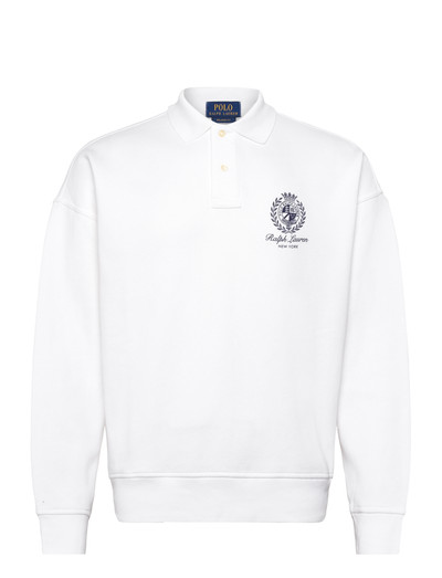 Featuring a classic polo collar with a two-button placket, this relaxed-fit sweatshirt offers both comfort and style. The long-sleeved design is enhanced by an embroidered graphic, adding a touch of sophistication to this casual piece.