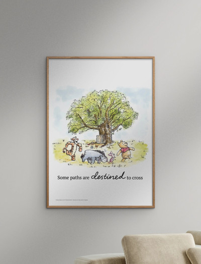 A classic Hundred Acre Wood moment that brings together beloved friends and comforting color, ideal for playful family settings. *Frame sold separately.