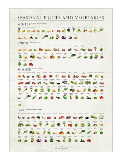 Discover a vibrant array of seasonal fruits and vegetables in this stunning poster. Celebrate nature's bounty with this colorful display that will brighten any space. *Frame sold separately.