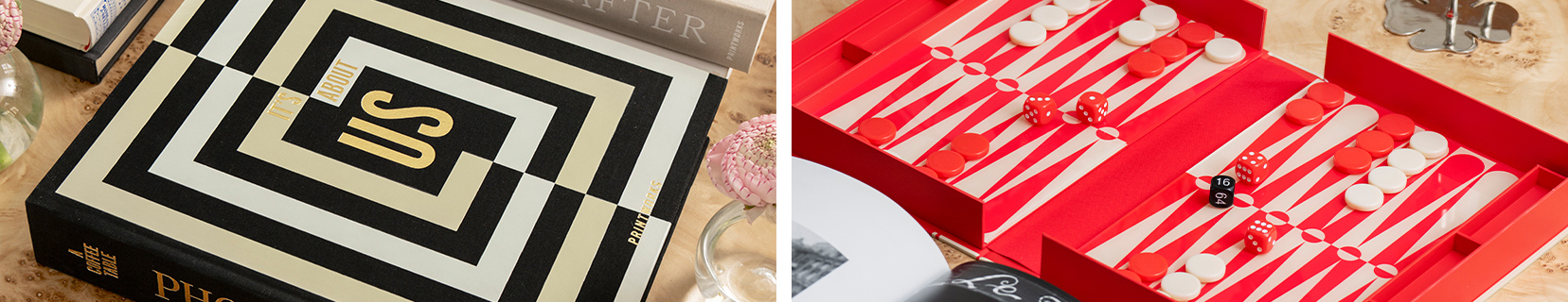PRINTWORKS offers an assortment of interior decor items. Their photo albums, coffee table books, and stylish storage solutions that look like albums and books, bring personality to bookshelves and living spaces. Board games and puzzles are designed for fun evenings with friends and family. In the kitchen, the brand offers sleek utensils, bar accessories, and trays with a design-first approach. Their collection also includes contemporary office items that add elegance to workspaces without compromising practicality. No matter if it's a chess set or a set of cutlery you seek, PRINTWORKS turns casually looking home details into sleek and tactile creations, worthy to enjoy as part of your everyday space.