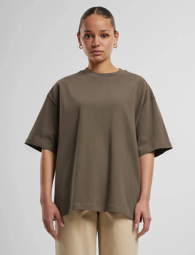 - Unisex tee - Round neckline - Dropped shoulders - Oversized cut (boxy fit) - 100% cotton, 270 GSM - Extra soft surface - 2.5cm wide collar