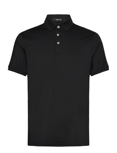 This Polo shirt is crafted with stretch jersey that is both lightweight and breathable. Its moisture-wicking properties help keep you cool and comfortable all day long.Tailored Fit: Sleeve hugs the bicep. Tailored through the waist.Size medium has a 29" body length (front and back), an 18" shoulder, and a 41" chest.Ribbed Polo collar. Three-button placket. Corozo buttons.Short sleeves with ribbed armbands.