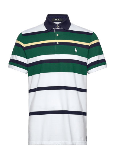 This lightweight Polo shirt is crafted with stretch cotton-blend piqué that’s developed with moisture-wicking properties. It is finished with signature touches, including our RLX logo and iconic Pony.Tailored Fit: Sleeve hugs the bicep. Tailored through the waist.Size medium has a 29" body length (front and back), an 18" shoulder, and a 41" chest.Ribbed Polo collar. Three-button placket. Corozo buttons.Short sleeves with ribbed armbands.