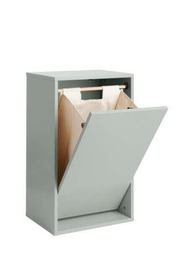 Stylish Sorting and Storage Solution We are pleased to introduce our stylish, wall-mounted laundry basket, which, with its Nordic design, beautiful colors, and focus on functionality, is both practical, simple, and delightful. At ReCollector, we develop products based on everyday needs, design, and, not least, with consideration for our environment. Ever since the launch of our popular sorting boxes, there has been a high demand for a larger laundry solution. With ReCollector's laundry basket, you get a solution that is light and airy in its expression. It is wall-mounted, making it convenient for a bathroom or utility room, particularly when it comes to cleaning and moisture. At the same time, you save space compared to more traditional round laundry baskets and ensure a decorative and neat solution for your home. The laundry basket can be used in combination with ReCollector's sorting boxes to create a framework for a personal and stylish washing station, where small and large boxes form a beautiful and practical frame. Additionally, the solution is perfect for a teenager's room or bedroom, where the laundry basket is a stylish addition that solves a practical daily challenge. With its clever push-lock, you can easily open the box, sort the laundry, and transport it from point A to point B. As usual, we consider the environment, and the box is made of FSC-certified wood in Poland. The linen-colored bag inside the box is sewn from GOTS-certified fabric and laminated with a light plastic layer. This material ensures that the bag also retains moisture from wet laundry. The wall-mounted solution also saves space compared to traditional round laundry baskets and makes floor cleaning easier. You can even use the surface as a shelf for decorative items. All in all, our wall-mounted laundry basket is the perfect combination of style and functionality for your home.