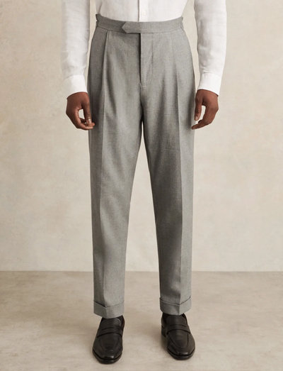 Tailored in a classic herringbone weave, the Complex trousers offer a refined silhouette with front pleats and sliding buckle side adjusters for a perfect fit. Turn-up cuffs complete the look with subtle sophistication.