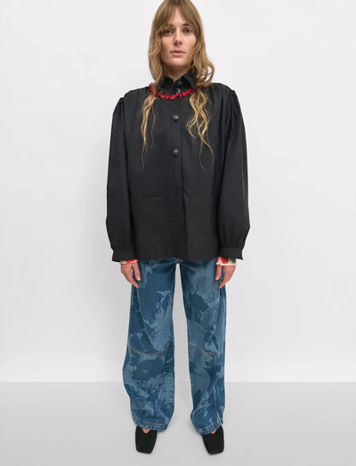 Crafted with a focus on both style and practicality, this button-up jacket features a classic collar and two front pockets. The design incorporates subtle gathering at the shoulders and cuffs, adding a touch of volume to the sleeves.