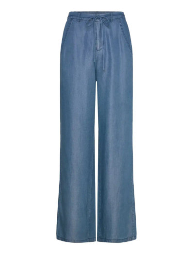 Offering a relaxed silhouette, these wide-leg trousers feature a comfortable drawstring waist. The design incorporates side pockets for added practicality and a fluid drape.