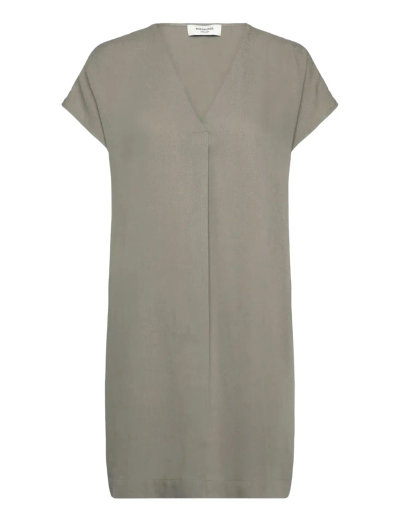 A classic V-neck and relaxed fit define this tunic dress. The simple design makes it a versatile piece for layering or wearing on its own.
