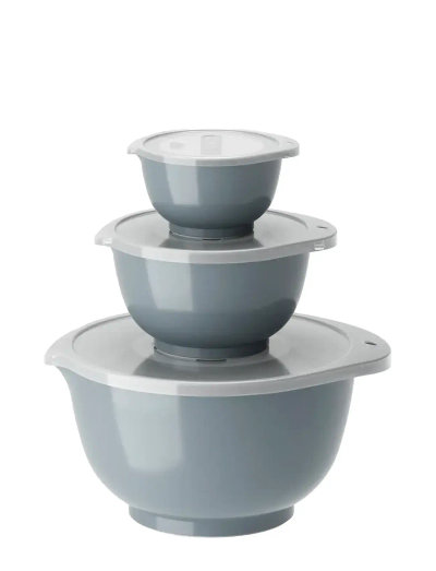 Margrethe mixing bowl set in 250ml + 750ml + 3 L sizes with lids. Stylish and popular bowl from Rosti. The Margrethe bowl is particularly suitable for food preparation, but can of course also be used for serving. With a lid it is a handy storage bowl.