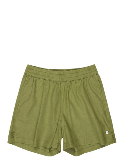 Easy pull on short, Fabric: 55% Linen, 45%Viscose 198gr/m2, Fit: Relaxed fit, Fly/Waist: Elasticated waistband, Emby at back