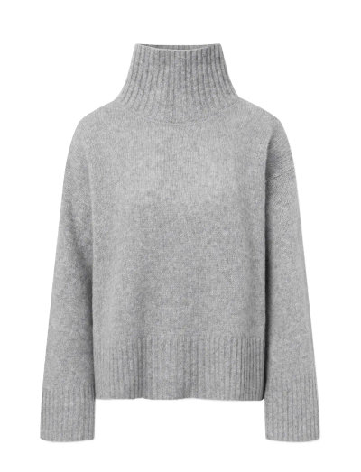 Discover the Klara Cashmere Silk sweater from Rue de Tokyo, a versatile addition to your wardrobe. This high neck knit sweater, available in Black, Eclipse Navy, Flint, Hazelnut, Jute, and Khalo, offers both style and comfort. The high neck design can be worn up or folded down, providing flexibility for different looks. The side slits add a touch of elegance, while the ribbed neckline, hemline, and cuffs ensure a relaxed fit for everyday wear.