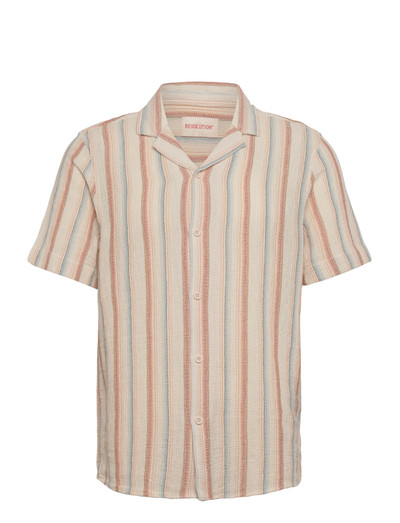 A Cuban short-sleeved shirt suitable for every day, crafted from a mid-weight structured cotton-polyester weave, that is slightly open and therefore makes the shirt breathable and comfortable for the warm summer days. The vertical stripe pattern that gives character to the shirt is yarn-dyed. Yarn-dyed fabric is made by pre-dyeing the yarns before they are woven, which ensures a better color, fastness and durability to the shirt. The shirt has a button-up front finished with 4-hole tone-in-tone buttons and a Cuban collar. The hem is curved for easy layering, and the back is designed with a traditional double-layer yoke with a box-pleat for extra comfort and mobility