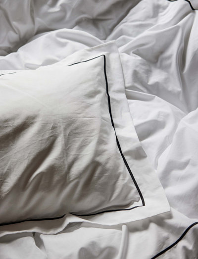 Let the hotel feeling move home. Carl pillowcase is crispy nice. Carl is made of soft organic cotton and will contribute to a good night sleep. The design is stylish and classic, with a white base decorated with black stitching, a sort of embroidery called “baratta”. Thread density 144.
