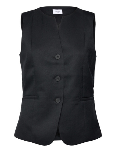 This tailored vest offers a sleek, structured silhouette. Featuring a notched lapel and button-front closure, it's finished with subtle welt pockets for added functionality.