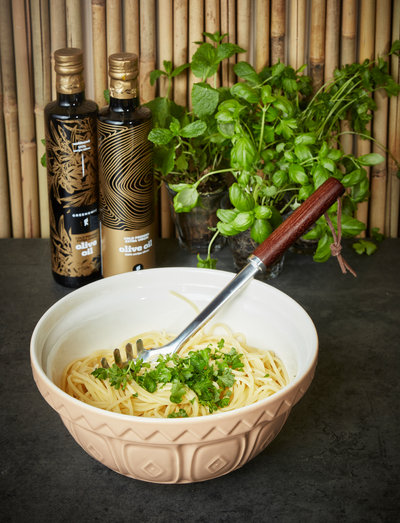 An elegant spaghetti server in stainless steel with wooden handle in dark ash. Equipped with leather strap for practical hanging. There are several tools in the same product line. Size 31x6.2 cm