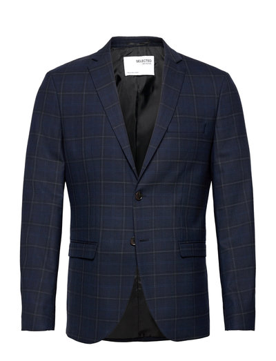 A refined check pattern elevates this single-breasted blazer. Its tailored fit ensures a sharp silhouette, making it ideal for both professional and social settings. Features include notched lapels and flap pockets.