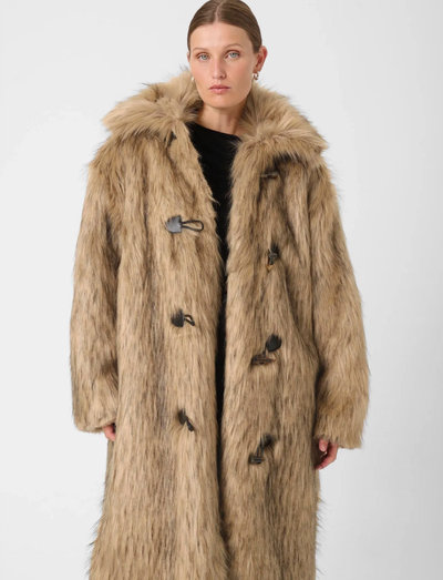 Offering a plush feel, this faux fur coat features toggle fastenings for a secure and stylish closure. The longline silhouette provides extra warmth and coverage, making it a perfect statement piece for colder days.