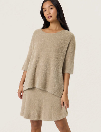 Offering a relaxed silhouette, this knit jumper features three-quarter sleeves, making it a versatile addition to your wardrobe. The soft texture adds a touch of comfort and style to any outfit.