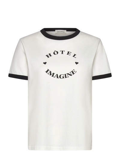 This short-sleeved tee features a contrasting trim at the neckline and cuffs, adding a touch of visual interest. A graphic print adorns the front, completing the look.