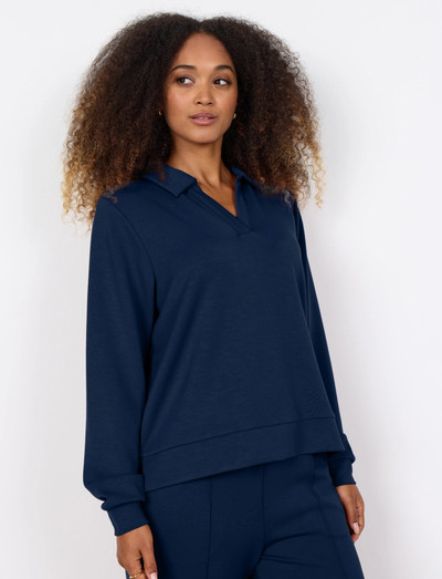 SC-BANU 285 Pullover is crafted from 48% Modal, 48% Polyester, 4% Elastane. It features a classic collar with V-neck details and long sleeves, with a smooth texture and a clean finish. Pair it with tailored pants for a sophisticated look or casual jeans for a relaxed style.