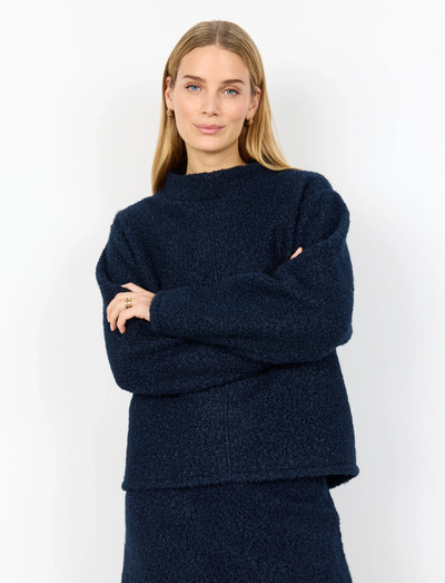 Featuring a distinctive high neckline, this knit offers a refined silhouette. The textured finish adds depth, making it a versatile piece for layering or wearing alone.